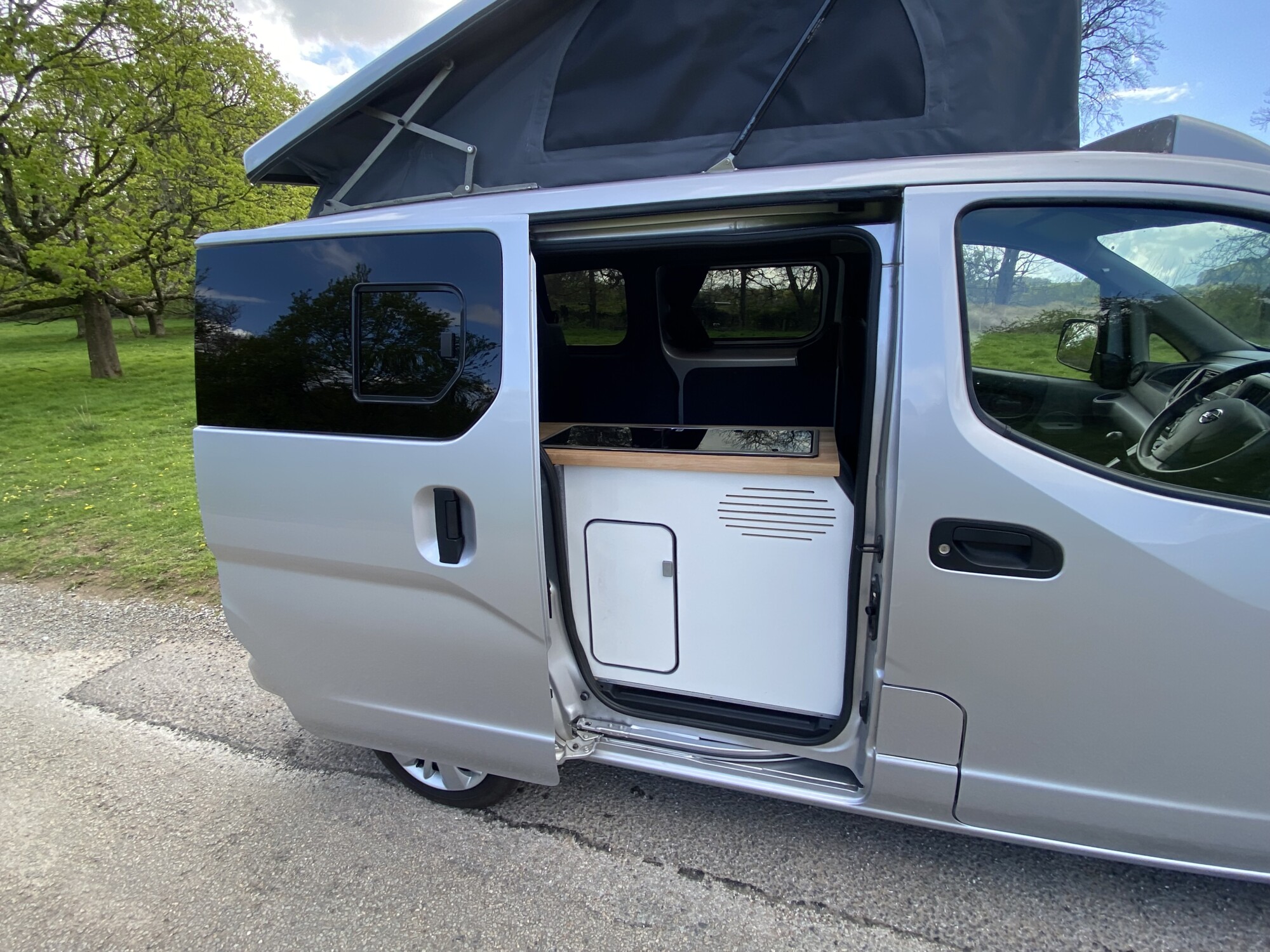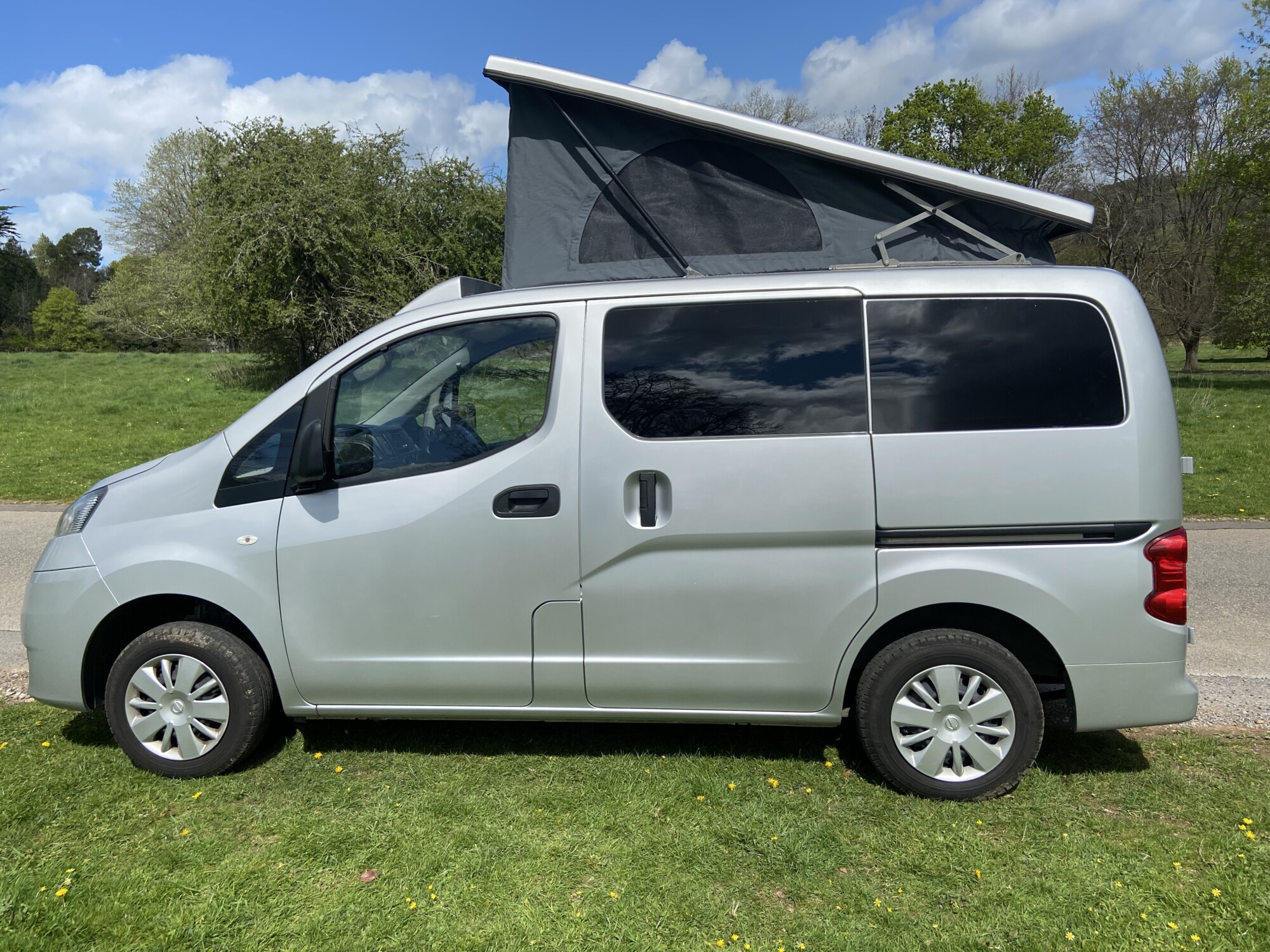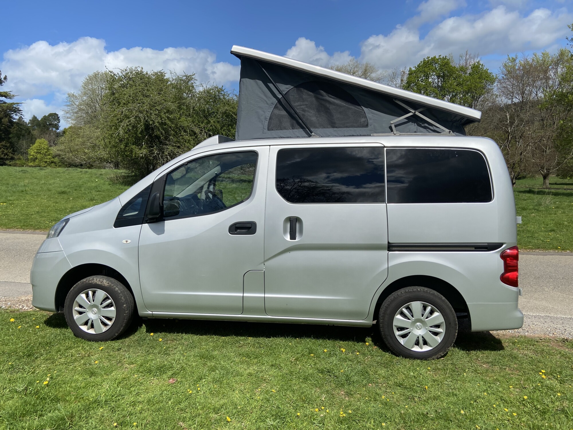 2017 Nissan NV200 1.5 DCI campervan with twin sliding doors in silver. Brand new professional conversion, New Mot supplied with no advisories, only two keepers from new and a genuine low mileage of only 51,000 miles. Equipped with four belted seats, reversing camera, Bluetooth, cd player, alloys, electric windows & mirrors.